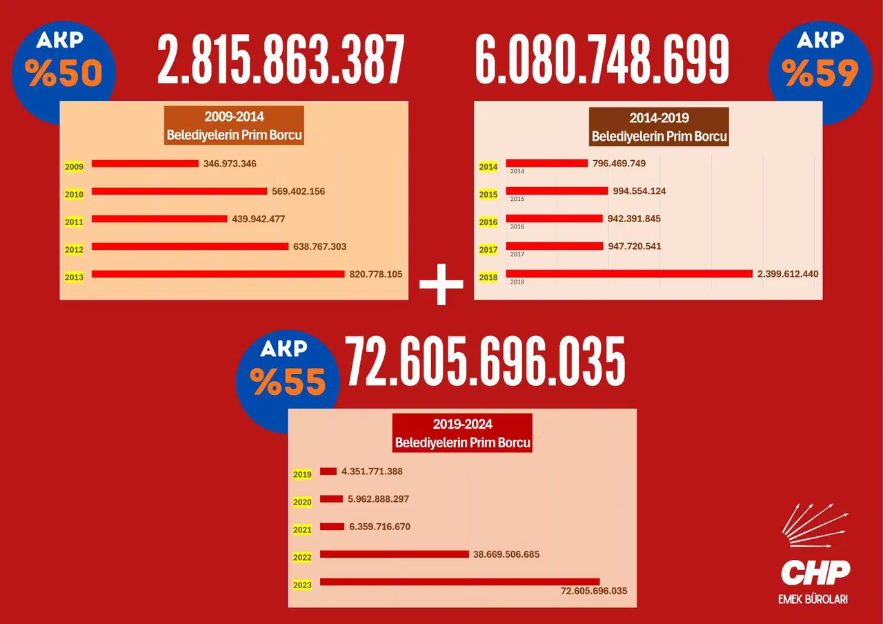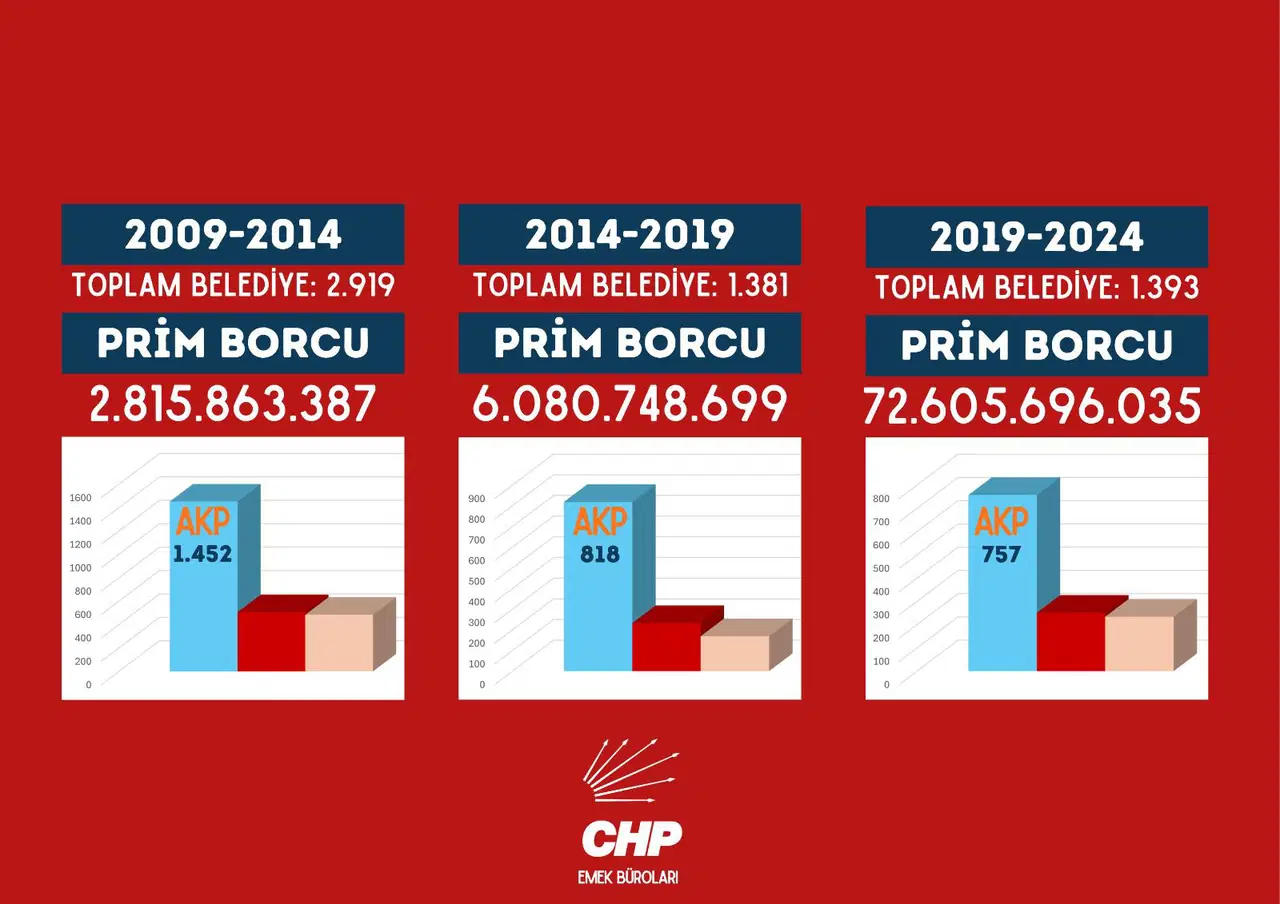Taşcıer, iktidarın CHP’li belediyeleri hedef alarak prim borçlarını öne çıkardığını ifade etti. “Sayıştay raporunda belediye borçlarına dair tek bir satır yok. CHP’li belediyelere aralıksız operasyon yapılırken, AKP’li belediyelerin borçları sessiz sedasız mahsuplaştırıldı” dedi.
